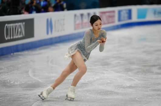 [베이징=AP/뉴시스] 신지아가 22일(현지 시간) 중국 베이징에서 열린 2026 국제빙상경기연맹(ISU) 피겨 스케이팅 사대륙선수권대회 여자 싱글 쇼트프로그램 연기를 펼치고 있다. 신지아는 두 차례 넘어지면서 기술점수(TES) 26.32점, 예술점수(PCS) 29.65점에 감점 2점으로 53.97점을 기록해 14위를 기록했다. 2026.01.23.