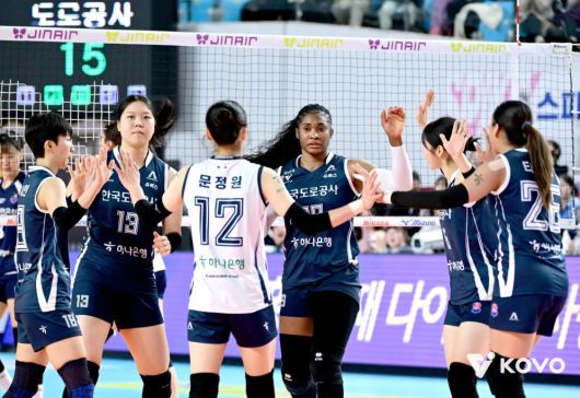 [SWTV 스포츠W 임재훈 기자] 프로배구 V리그 여자부 선두 한국도로공사가 IBK기업은행에 역전승을 거두고 2위 현대건설과 승점차를 두 자릿수로 벌렸다.(사진: KOVO) |