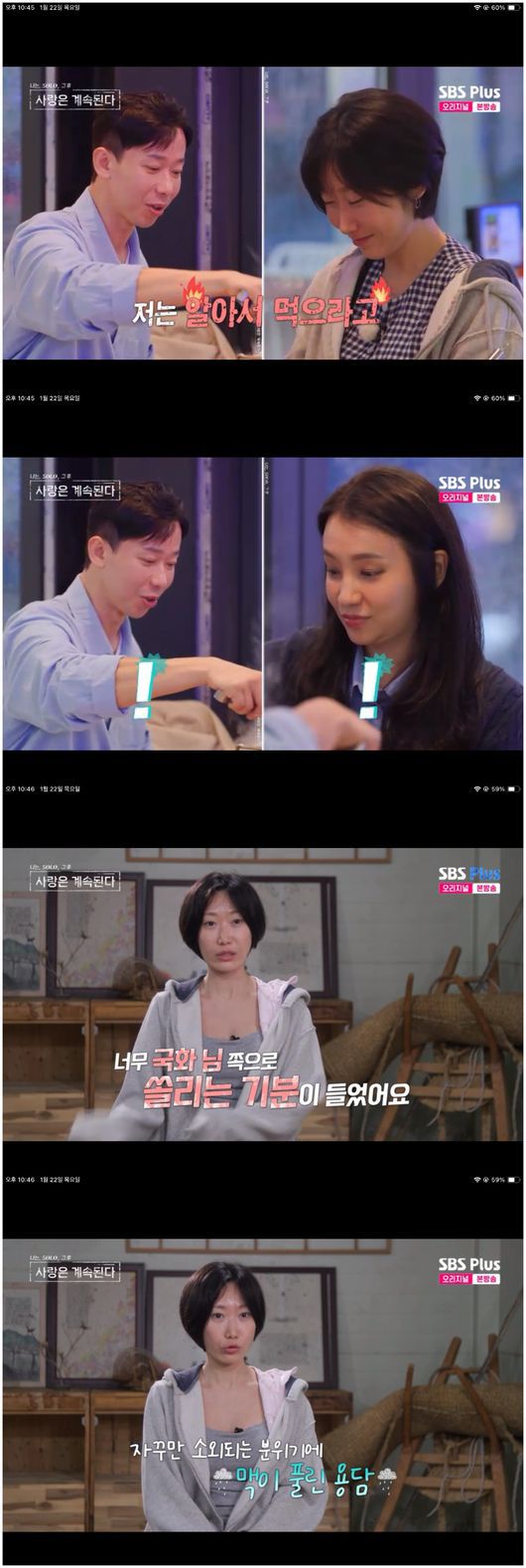 22일 방송된 ENA, SBS Plus 예능 ‘나는 SOLO, 그 후 사랑은 계속된다’(이하 ‘나솔사계’)에서는 다대일 데이트를 끝내고 온 26기 경수와 국화의 달라진 마음, 그리고 주눅이 든 용담이 그려졌다.