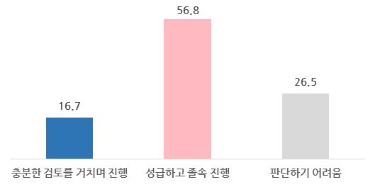 여기에다 '판단하기 어렵다'(26.5%)까지 포함하면 10명 중 8명 이상이 현 추진 방식에 신뢰를 보이지 않았다.