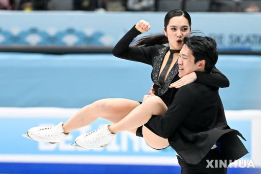 [베이징=신화/뉴시스] 임해나(왼쪽)와 권예가 22일(현지 시간) 중국 베이징에서 열린 2026 국제빙상경기연맹(ISU) 피겨 스케이팅 사대륙선수권대회 아이스댄스 리듬 댄스 연기를 펼치고 있다. 임해나와 권예는 기술점수(TES) 29.65점, 예술점수(PCS) 30.73점으로 66.05점을 기록해 7위에 올랐다. 2026.01.23.