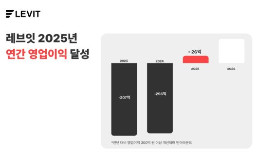 레브잇이 2025년 연간 영업이익 26억 원을 기록하며 흑자 전환에 성공했다고 밝혔다. 2023년 영업이익 -307억 원, 2024년 -293억 원의 적자를 기록한 것과 대비되는 성과다. 2025년에는 월 기준으로도 흑자를 지속적으로 달성했다.