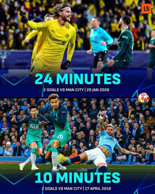 UCL 우승 경력이 있는 맨시티를 상대로 10분 만에 멀티골을 넣은 손흥민의 이 기록은 앞으로도 깨지기 어려울 듯하다.