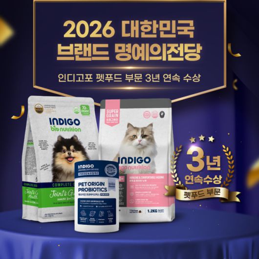 [서울=뉴스핌] 이나영 기자= 프리미엄 펫푸드 전문기업 오에스피의 브랜드 '인디고포'가 '2026 대한민국 브랜드 명예의 전당' 펫푸드 부문에서 3년 연속 수상하며 국내 펫푸드 시장에서의 브랜드 경쟁력을 다시 한번 입증했다고 23일 밝혔다.
