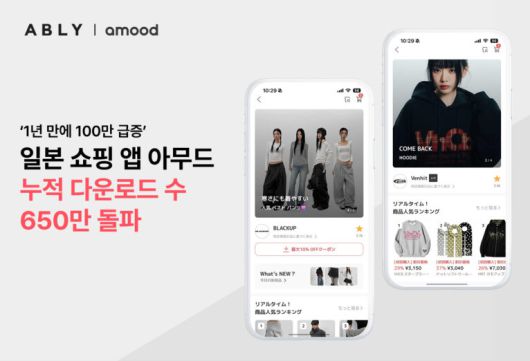스타일 커머스 에이블리(대표 강석훈)가 운영하는 일본 패션 플랫폼 ‘아무드(amood)’가 일본 내 누적 다운로드 수가 650만 회를 돌파했다고 23일 밝혔다. 최근 1년간 다운로드 수가 약 100만 건 증가하며 일본 1020대 여성층을 중심으로 빠르게 확산되고 있다.