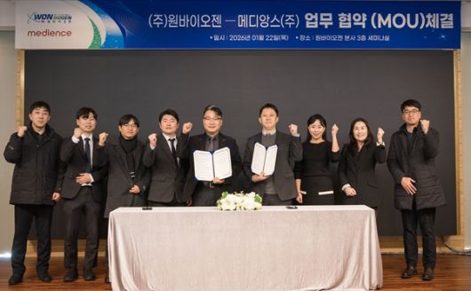 사진설명: 원바이오젠-메디앙스 업무협약체결(사진제공 원바이오젠) |