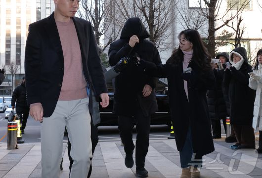 꽁꽁 가린 채 출석하는 강선우 의원 전 보좌관