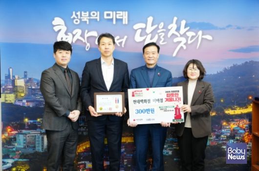 서울 성북구(구청장 이승로)가 지난 21일 현대백화점 미아점(점장 서세규)으로부터 취약계층의 겨울나기 지원을 위한 성금 300만 원을 기탁받았다고 23일 전했다.