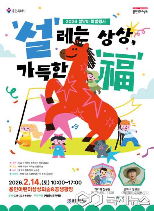 (용인=국제뉴스) 강정훈 기자 = 용인문화재단(이사장 이상일)은 2026년 설 명절을 맞아 2월 14일(토), 용인어린이상상의숲과 용인문화도시플랫폼 공생광장 일원에서 설맞이 특별행사 〈'설'레는 상상, 가득한 '福'〉을 개최한다.