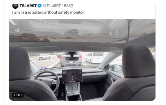 일론 머스크 테슬라 최고경영자(CEO)는 소셜 미디어 X에 "테슬라의 로보택시가 오스틴에서 자동차 내에 안전요원 없이 운행하기 시작했다"며 안전요원 없이 주행하고 있는 테슬라의 로보택시 안에서 촬영한 것으로 보이는 동영상을 올렸다.