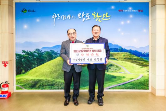 함안군은 ㈜경성엠티 진성규 대표가 고향사랑기부금 2천만원과 함께 함안군 장학재단에 장학금 3천만원을 기탁했다.