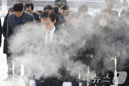 (광주=뉴스1) 김태성 기자 = 조국 조국혁신당 대표가 23일 광주 국립5.18민주묘역을 찾아 참배하고 있다. 2026.1.23/뉴스1