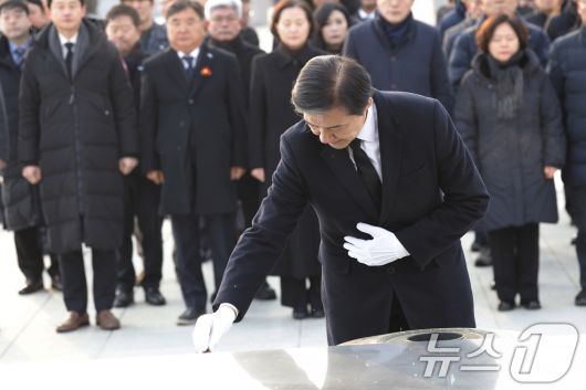 (광주=뉴스1) 김태성 기자 = 조국 조국혁신당 대표가 23일 광주 국립5.18민주묘역을 찾아 헌화 분향하고 있다. 2026.1.23/뉴스1hancut01@news1.krCopyright ⓒ 뉴스1. All rights reserved. 무단 전재 및 재배포, AI학습 이용 금지.