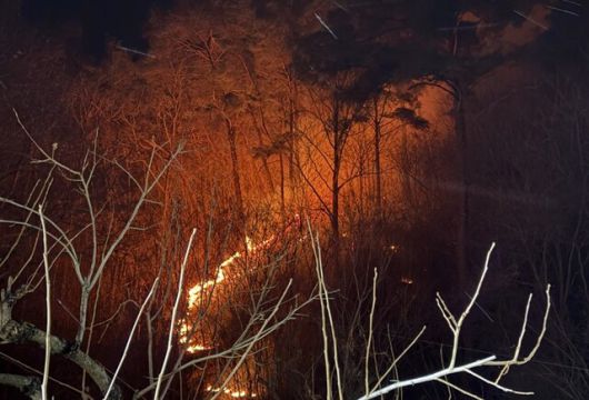 22일 저녁 8시58분께 전남 곡성군 오산면 선세리 한 주택에서 발생한 화재가 인근 야산으로 번져 산불이 났다. 전남소방본부 제공 |