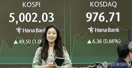 [서울=뉴스핌] 양윤모 기자 = 23일 오전 코스피가 전장 종가보다 49.50 포인트(1.00%) 상승하며 5002.03으로, 코스닥은 6.36 포인트(0.66%) 상승한 976.54로 장을 시작한 가운데, 서울 중구 하나은행본점 딜링룸에서 직원들이 업무를 보고 있다. 서울외환시장에서 달러/원 환율은 전장 대비 1.90원 하락한 1468.00원에 주간거래를 시작했다. 2026.01.23 yym58@newspim.com