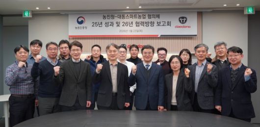 대동과 농진청은 2024년 5월 '스마트농업 협력 협의체'를 출범하고 국내 농업의 AI 대전환을 위해 △데이터 △정밀농업 △그린바이오 및 스마트팜 △현장 확산 등 4개 분과, 총 18개 협력 과제를 추진해 왔다. 양측은 2026년 성과보고회를 통해 주요 성과를 공유하고, AI 농업 기술 고도화와 현장 확산을 가속화를 위한 중점 협력 방안을 논의했다.