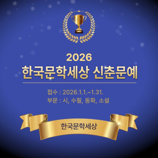 (서울=뉴스1) 김정한 기자 = 한국문학세상(회장 김영일)이 디지털 문학의 창의적 발전과 재능 있는 신인 작가 발굴을 위해 '2026 한국문학세상 신춘문예'를 개최한다. 공모 접수는 31일까지 온라인과 모바일을 통해 진행된다.