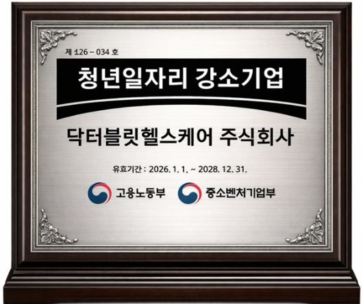청년일자리 강소기업 인증패. 닥터블릿헬스케어 제공 |