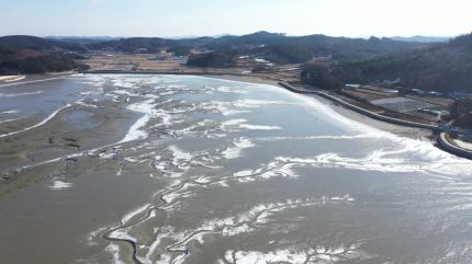또 갯벌에 자란 감태 위로 얼음이 엉겨 붙게 되면 밀물 때 바닷물이 들어오면서, 얼음덩어리와 함께 감태가 뜯겨 나가는 일도 벌어지고 있습니다.