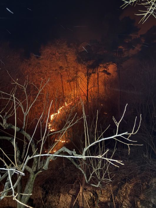 산림청은 산불재난특수진화대 등 진화인력 108명, 산불진화 헬기, 고성능산불진화차량 등 장비 38대 등이 투입해 불을 끄고 있다.