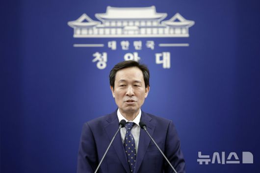 [서울=뉴시스] 최동준 기자 = 사의를 표명한 우상호 정무수석이 18일 청와대에서 인사말을 하고 있다. 2026.01.18. photocdj@newsis.com |