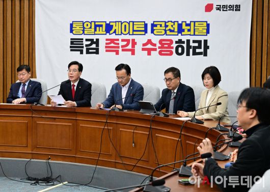 아시아투데이 이병화 기자 = 송언석 국민의힘 원내대표가 23일 국회에서 열린 원내대책회의에서 모두발언을 하고 있다.