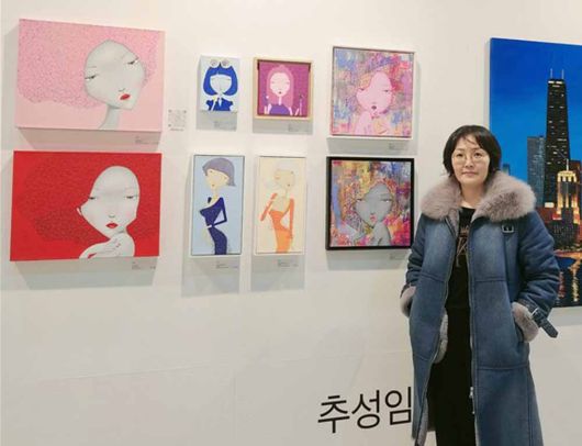 추성임 작가는 'Mrs. CHU'라는 인물을 통해 럭셔리한 라이프스타일을 표현한다. 무표정으로 정면을 응시하는 여성의 도도함과 따뜻함을 동시에 담아내며, 명화 이미지를 단순화한 형태와 현대적 색감으로 조형적 언어를 구현한다. 그의 작품은 현대인의 내면적 허무감과 욕망의 양가적 감정을 보여주는 현대인의 자화상으로 평가받는다.
