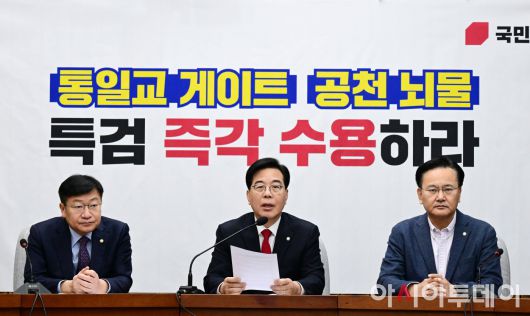 아시아투데이 이병화 기자 = 송언석 국민의힘 원내대표가 23일 국회에서 열린 원내대책회의에서 모두발언을 하고 있다.