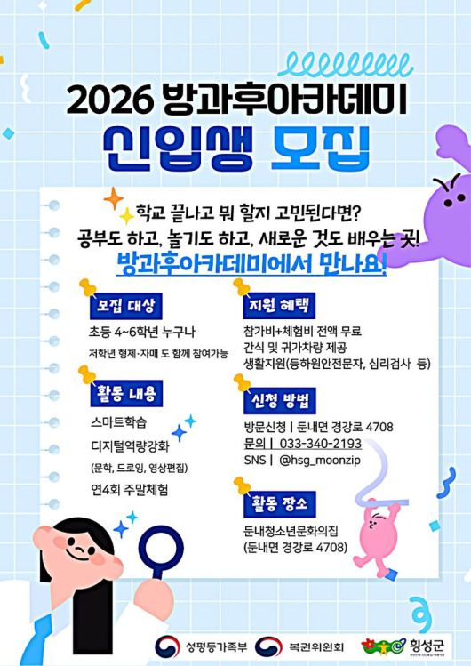 [횡성=뉴시스] 청소년방과후아카데미 모집 안내문. (사진=횡성군 제공) 2026.01.23. photo@newsis.com *재판매 및 DB 금지 |