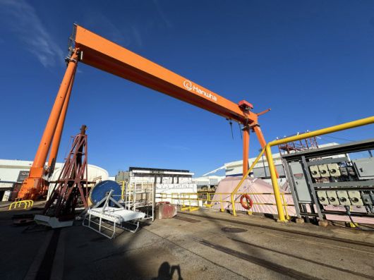 한화필리십야드 4번 독에서 한화의 상징인 오렌지색 크레인이 컨테이너선을 건조하고 있다. (사진=한화오션) |