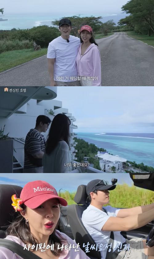 영상 속 신지는 예비남편 문원, 스태프들과 함께 사이판으로 여행을 떠났다. 널찍한 호텔방과 테라스 밖으로 펼쳐진 에메랄드빛 오션뷰가 장관을 이뤘다.