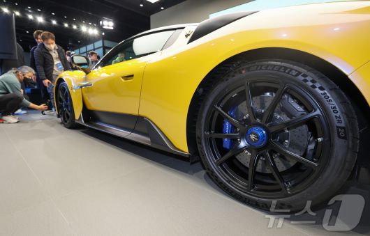 (성남=뉴스1) 안은나 기자 = 마세라티 코리아 고성능 슈퍼 스포츠카 ‘GT2 스트라달레(Stradale)’ 공식 출시 행사가 열린 22일 경기 성남시 분당구 마세라티 판교 전시장에 차량이 진열돼 있다. 이탈리아 모데나에서 100% 한정 주문 생산 방식으로 제작되는 GT2 스트라달레는 레이싱 퍼포먼스 구현을 위해 차중량을 MC20 대비 59kg 줄였으며, 공기 흐름을 정교하게 다듬은 바디 패키지, 대형 리어 윙 등은 280km/h의 고속 주행 시 최대 500kg에 달하는 다운포스를 생성한다. 2026.1.23/뉴스1