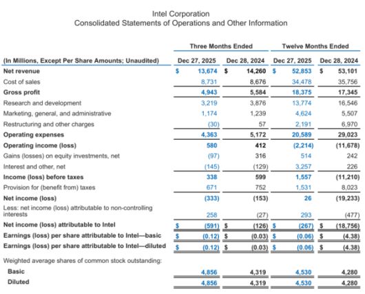 22일(현지시각) 인텔은 2025년 4분기 성적표를 발표했다.
