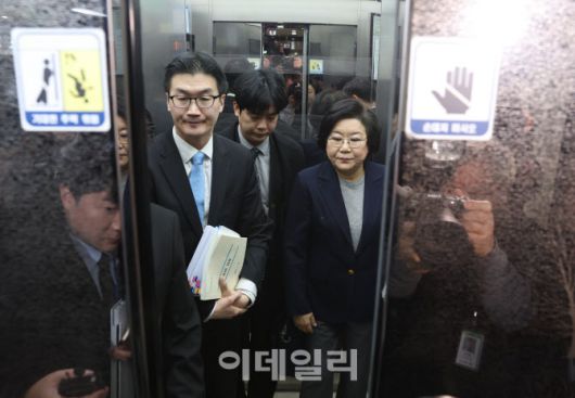 [이데일리 노진환 기자] 이혜훈 기획예산처 장관 후보자가 23일 오전 서울 여의도 국회에서 열린 재정경제기획위원회 인사청문회에 출석하기 위해 승강기를 타고 있다.