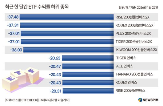 [그래픽] 최근 한 달간 ETF 수익률 하위 종목
