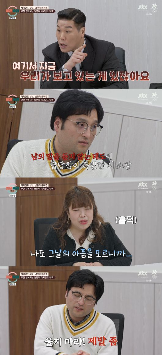 남편의 말에 아내는 "나도 그날의 아픔을 모른다"며 눈물과 함께 사과를 건넸다. 그러나 남편은 "울지 마라"고 단호하게 아내에게 선을 그어 모두를 황당하게 만들었다.