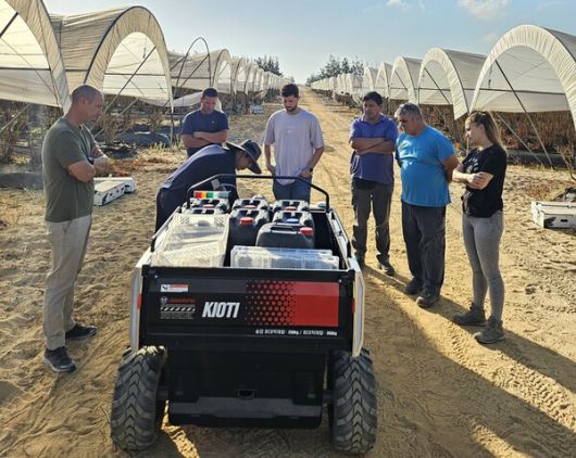대동로보틱스는 지난 7월 스페인 후엘바 지역의 호티프룻 베리 농장에서 자율주행 운반로봇 개념검증(PoC)을 실시했다. 사진은 대동로보틱스 사업부문 감병우 전무가 농장 관계자들에게 자율주행 운반로봇의 기능을 설명하고 있다. [사진; 대동] |