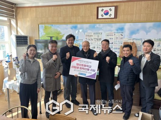 삽량문화마을협동조합 양산초 기부금 전달 모습./사진=양산시 |