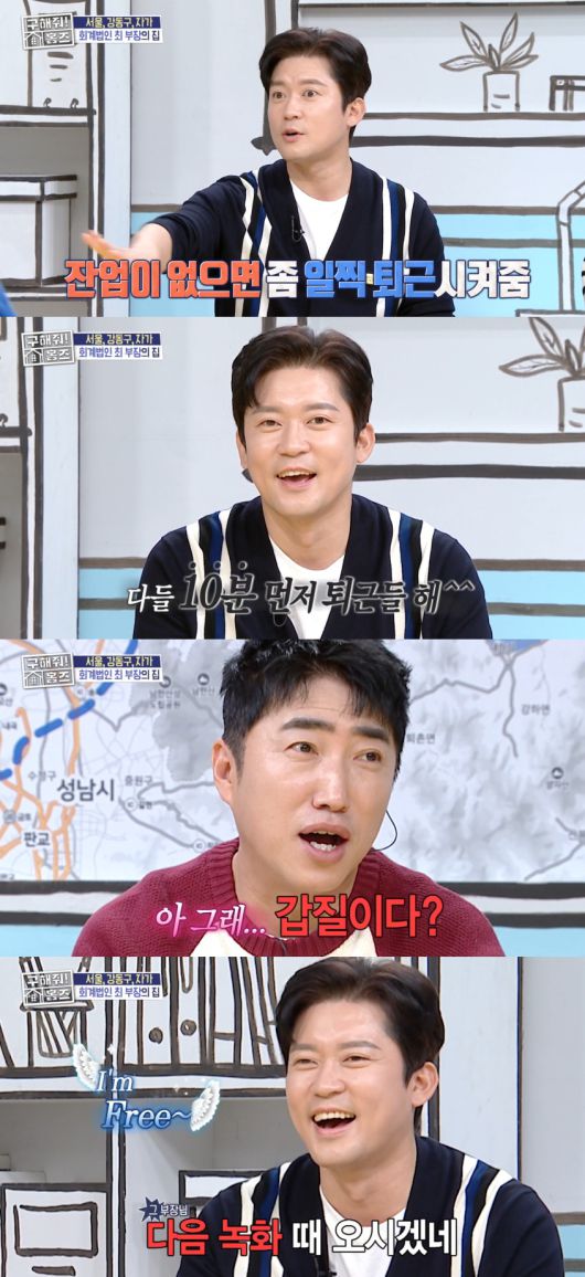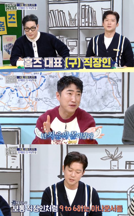 22일 MBC '구해줘! 홈즈'는 서울에 자가를 보유한 대기업 다니는 부장들의 집을 찾아 떠나는 특집을 마련했다. 배우 박호산과 하도권, 김대호가 나서 현실 직장인들의 삶과 부동산 이야기를 들었다.