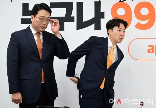 아시아투데이 이병화 기자 = 이준석 개혁신당 대표와 천하람 원내대표가 23일 국회를 찾은 홍익표 청와대 신임 정무수석을 기다리고 있다. ⓒ "젊은 파워, 모바일 넘버원 아시아투데이"