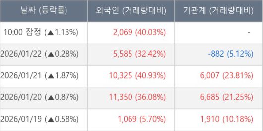 [표] 외국인ㆍ기관 순매매량 (단위 주)