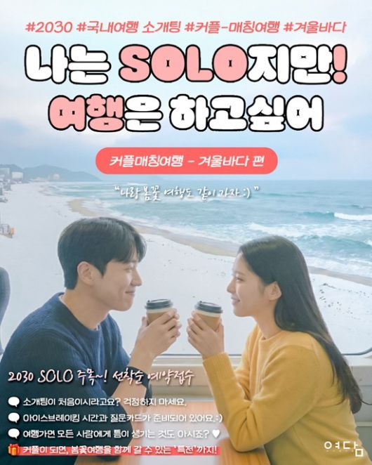 2026년 새해를 맞아 여담이 선보인 '나는 솔로지만 여행은 하고 싶어(커플 매칭 여행 – 겨울바다 편)'은 2030 남녀가 관광열차를 타고 보령 겨울바다로 떠나는 여정 속에서 자연스러운 만남이 이루어지도록 기획된 테마 여행이다.