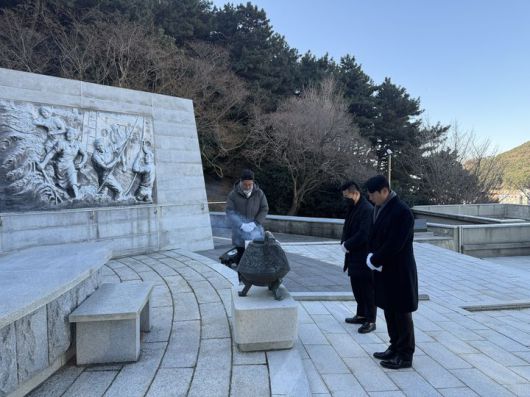 [서울=뉴시스] 홍세희 기자 = 한국해운조합은 지난 22일 부산 태종대 순직선원 위령탑을 찾아 헌화하고 참배했다고 23일 밝혔다.