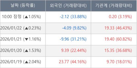 ※ 사모펀드 등 일부 기관의 순매매량은 표시되지 않음