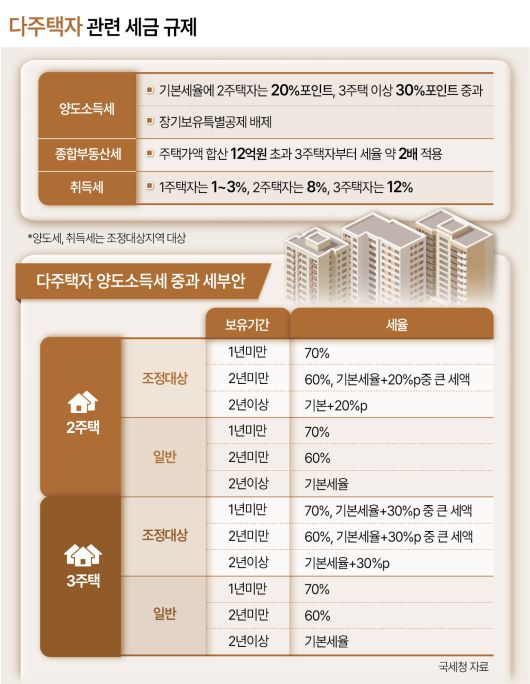정부가 다주택자에 대한 양도세 중과를 부활하는 이유는 명확하다. 다주택자의 매물을 시장에 풀어 집값 안정을 꾀하겠다는 것이다. 앞서 국토교통부 관계자는 10·15 대책의 실효성을 묻는 질문에 “핵심은 세제에 달려있다”며 “(다주택 양도세 중과가 부활하면)다주택자는 5월 9일 전까지 보유하고 있는 주택을 팔아야 하지 않겠느냐”고 말하기도 했다. 다주택자 과세를 통한 매물 유도 효과를 노렸다는 걸 예상할 수 있는 대목이다.