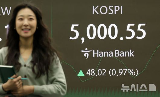 이날 전 거래일보다 0.64% 오른 4984.08에 장을 시작한 코스피는 오전 9시 11분께 5000선을 재탈환했다. 이어 등락을 반복하다 9시42분께 5021.13을 기록, 하루 만에 사상 최고가를 다시 썼다. 이후 상승과 하락을 반복하며 5000선을 오르내리는 양상을 보이고 있다.