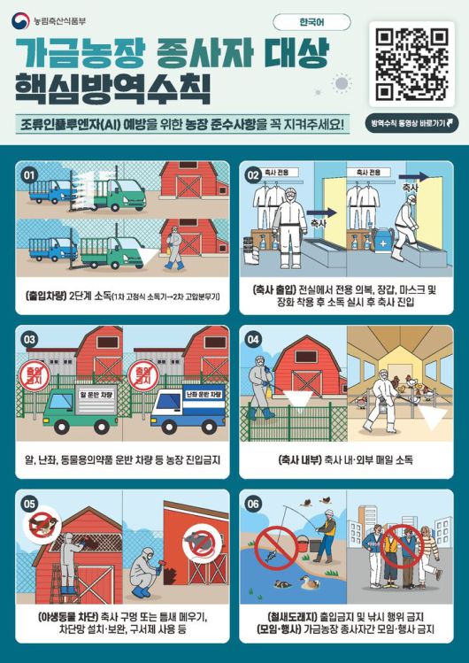정창근 도 동물방역과장은 "올겨울 고병원성 조류인플루엔자가 급격하게 전국적으로 확산되고 있는 만큼 외국인 근로자 방역 관리를 포함한 기본 방역수칙 준수가 무엇보다 중요하다"고 강조했다.