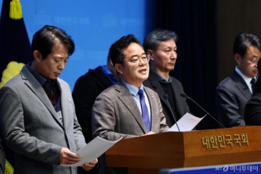 [서울=뉴시스] 김명년 기자 = 민병덕 더불어민주당 을지로위원회 위원장이 23일 오후 서울 여의도 국회 소통관에서 열린 '입점업체 영업비밀로 자사상품 만든 쿠팡의 약탈적 행태 규탄 기자회견'에서 발언하고 있다. 2025.12.23. kmn@newsis.com /사진=김명년 |
