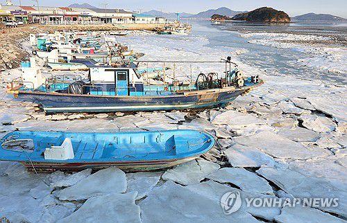 (인천=연합뉴스) 임순석 기자 = 한파가 이어진 23일 인천 중구 영종도 예단포항 인근 갯벌이 얼어 있다. 2026.1.23