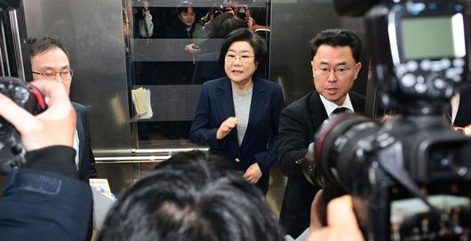 인사청문회를 앞둔 이혜훈 기획예산처 장관 후보자가 23일 오전 서울 여의도 국회에서 청문회장으로 이동하고 있다. 이상섭 기자 |
